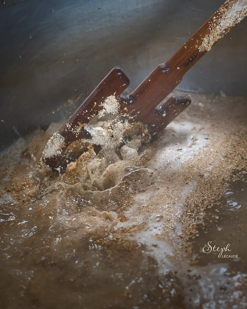 Tout commence avec le malt, généralement issu de l'orge. Ce malt est concassé sur place, dans mon atelier à Sainte-Pazanne, pour obtenir une mouture (sorte de farine grossière). Cette étape essentielle permet de mettre les sucres à dispo.