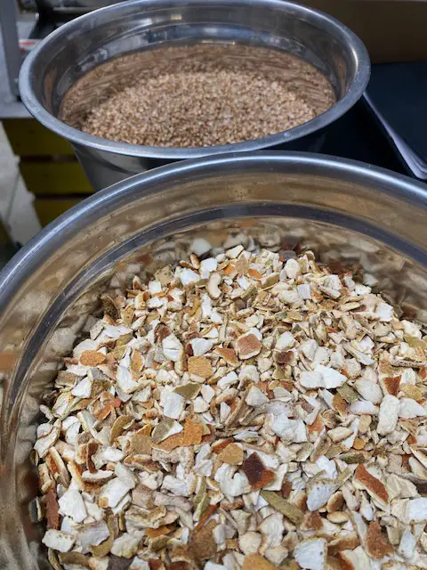 Puis on filtre le moût sucré avant de le porter à ébullition. C'est à ce moment que j'ajoute le houblon, des épices (ex : verveine citronnée utilisé dans la blond bear), une plante aromatique qui donne à la bière son amertume, ses parfums floraux ou fruités, et surtout sa personnalité unique.